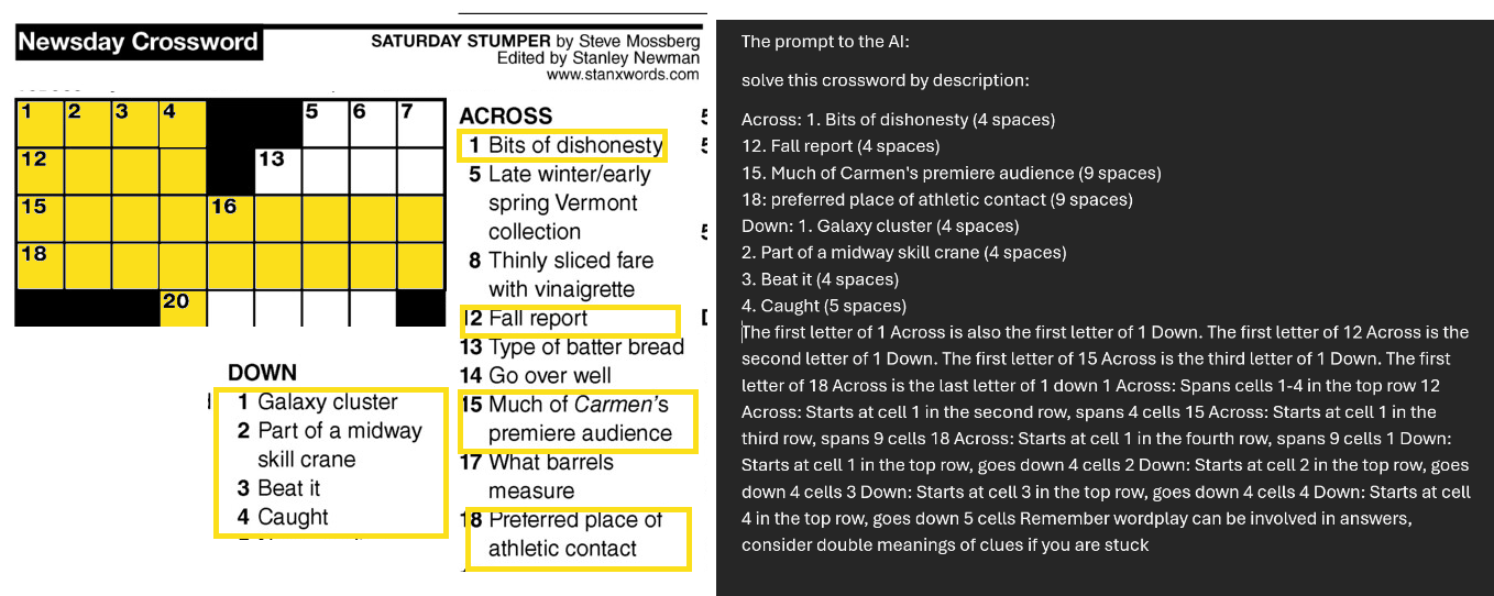 Mollick weist aber auch darauf hin, dass das Modell seinen Vorgänger nicht in allen Bereichen schlägt. So sei es zum Beispiel beim Schreiben nicht überlegen, was auch die eigenen Auswertungen von OpenAI zeigten. Er demonstriert die Fähigkeiten und Grenzen des Modells anhand eines komplexen Kreuzworträtsels, bei dem das Modell zunächst Schwierigkeiten hatte, es aber nach einem entscheidenden Hinweis richtig löste.