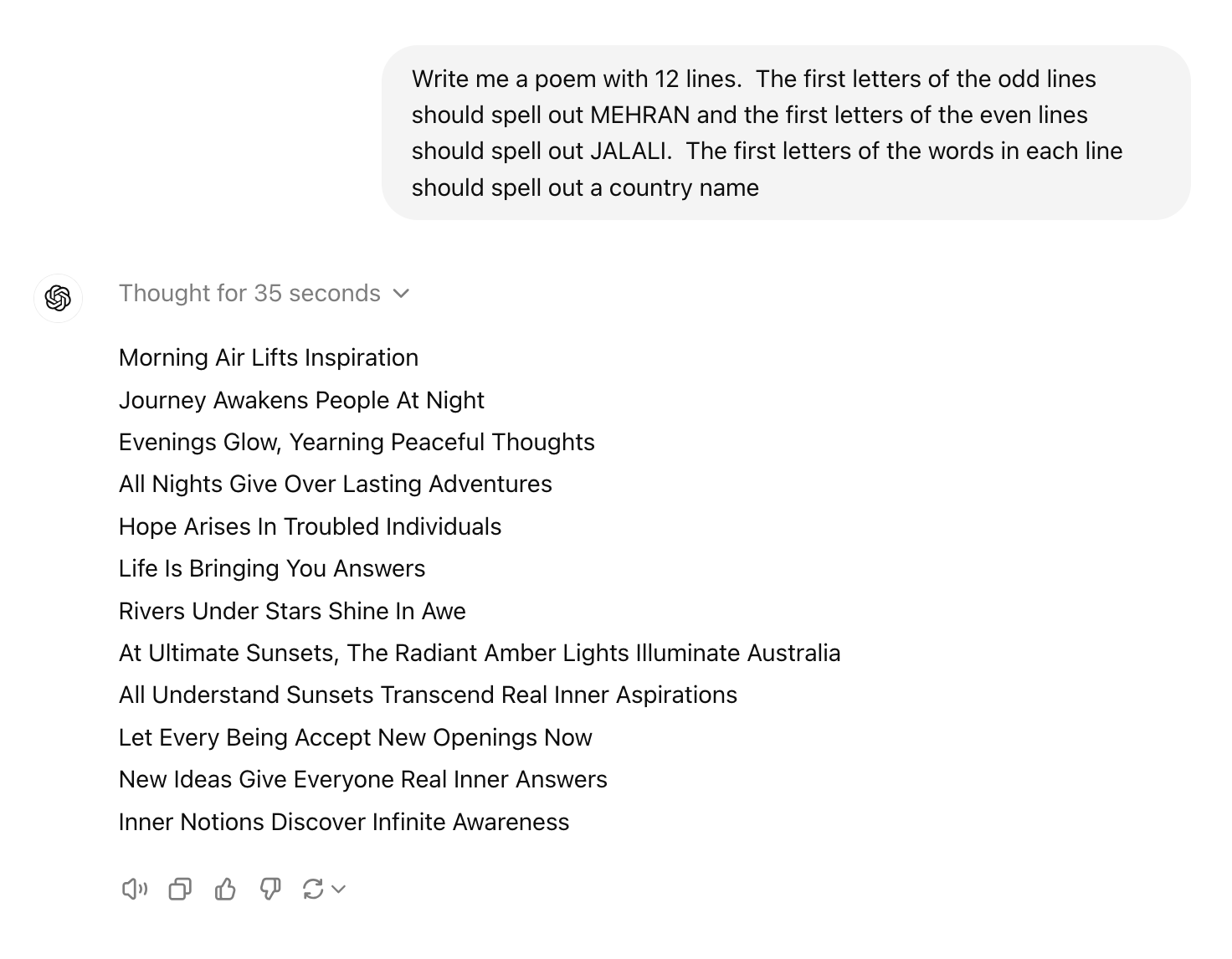 Allerdings gibt es auch positive Beispiele, etwa beim Schreiben eines Gedichtes, das sehr spezifischen Regeln folgen soll. Kein anderes Sprachmodell hätte diese komplexe Aufgabe erfüllen können, so Mehran Jalali.