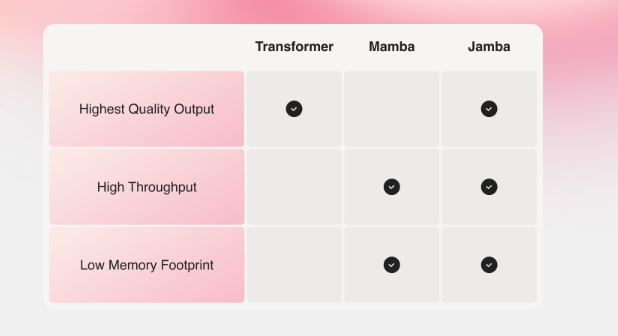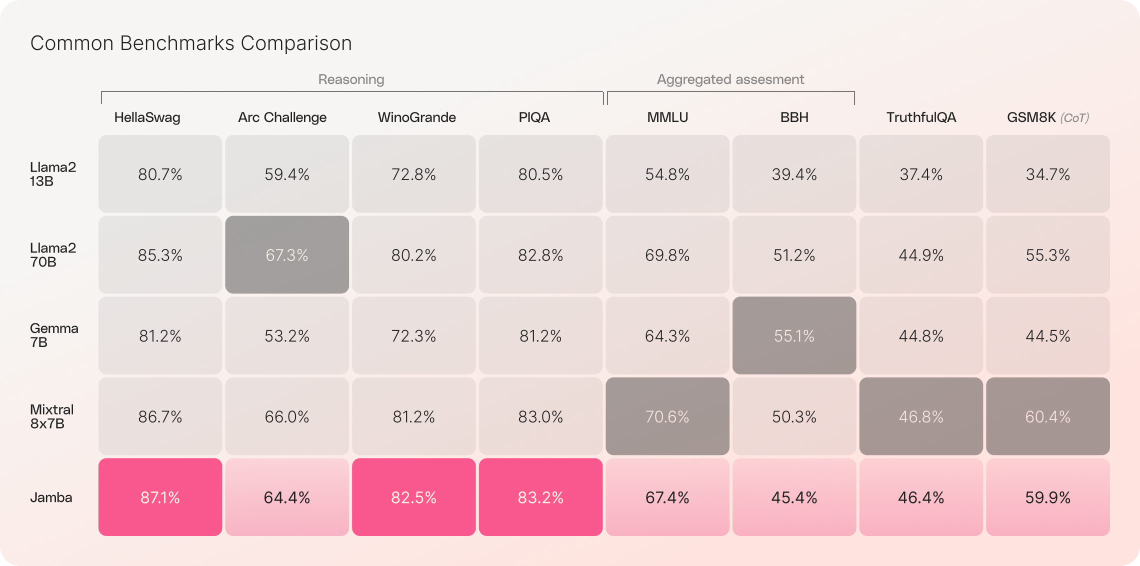 In Benchmarks liegt Jamba auf Augenhöhe mit Mixtral8x7B, bietet dabei allerdings die oben erwähnten Vorteile in Geschwindigkeit und Effizienz.