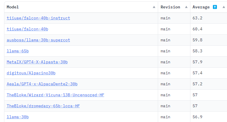 Die beiden größten FalconLM-Modelle, von denen eines mit Instruktionen verfeinert wurde, belegen derzeit mit deutlichem Vorsprung die ersten beiden Plätze im Hugging Face OpenLLM Leaderboard, das die Ergebnisse verschiedener Benchmarks zusammenfasst. Zusätzlich bietet das TII ein 7-Milliarden-Modell an.