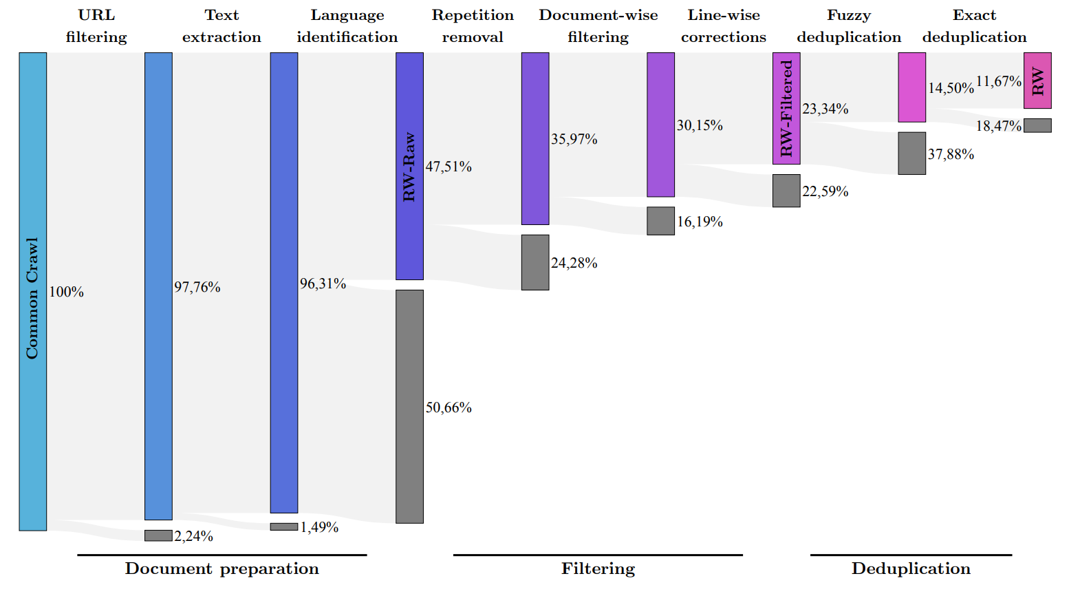 Das Forschungsteam entwickelte daher ein Verfahren, um aus dem bekannten Common-Crawl-Datensatz qualitativ hochwertige Daten zu extrahieren und Dubletten zu entfernen. Trotz dieser gründlichen Bereinigung blieben fünf Billionen Textstücke (Tokens) übrig - genug, um leistungsfähige Sprachmodelle zu trainieren. Das Kontextfenster liegt bei 2048 Token, also etwas unterhalb von ChatGPT-Niveau.