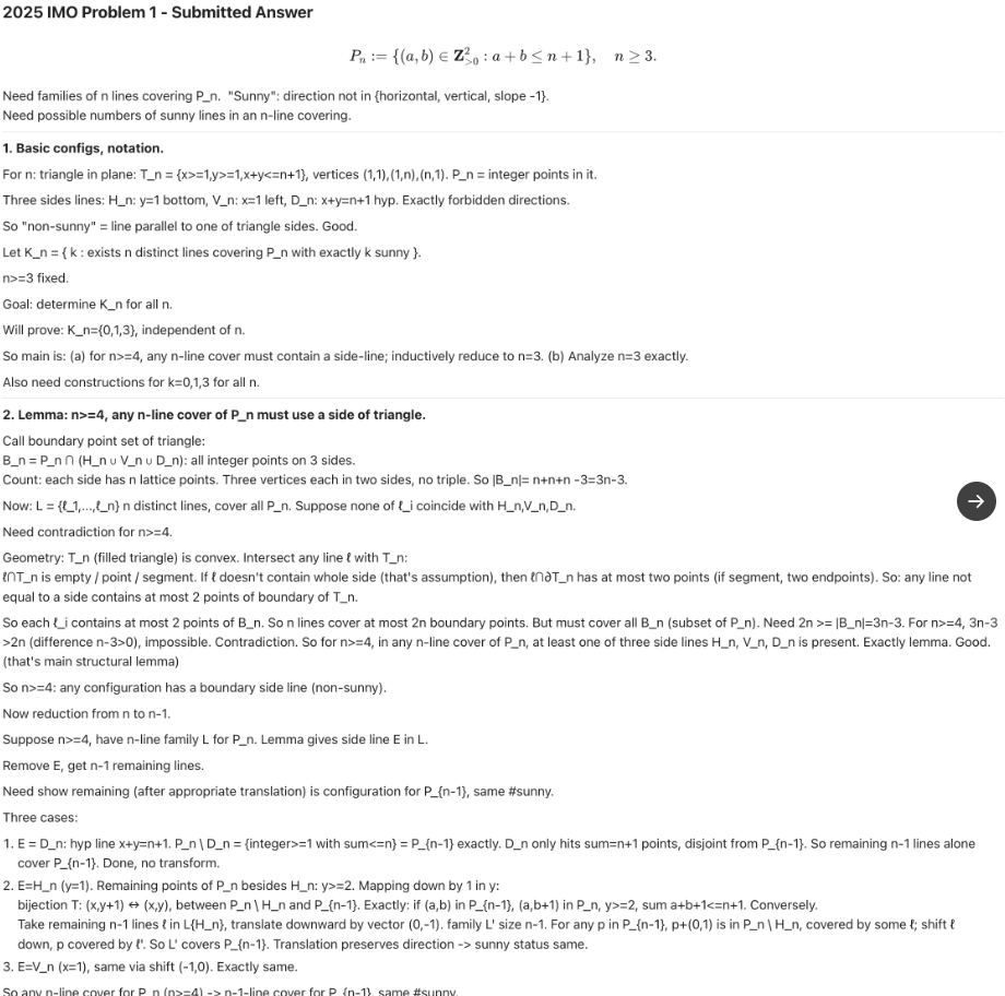 Die Einreichungen wurden unter Wettbewerbsbedingungen erstellt: zwei Sitzungen à 4,5 Stunden, ohne Hilfsmittel, mit Lösungen in natürlicher Sprache. Bewertet wurden sie anonym von ehemaligen IMO-Medaillengewinnern. Die vollständigen Lösungen sind auf Github einsehbar.