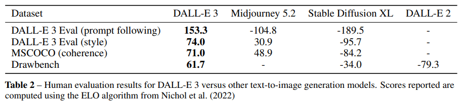 In einer Fußnote weist OpenAI darauf hin, dass die Neuerung bei der Bildbeschriftung nur ein Teil der Neuerungen von DALL-E 3 sei, das "viele Verbesserungen" gegenüber DALL-E 2 aufweise. Der deutliche Vorsprung von DALL-E 3 gegenüber konkurrierenden Systemen sei daher nicht allein auf die synthetische Bildbeschriftung zurückzuführen. Auf weitere Verbesserungen von DALL-E 3 geht OpenAI in dem Papier nicht ein.