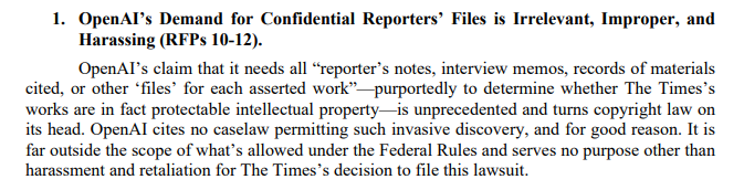 Die KI-Firma argumentiert, dass diese Dokumente entscheidend seien, um die urheberrechtliche Zulässigkeit der Times-Inhalte zu beurteilen.