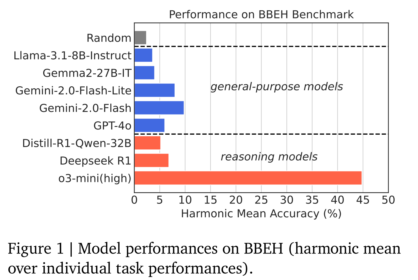 Google DeepMind hat verschiedene Modelle getestet, darunter General-Purpose-Modelle wie Gemini 2.0 Flash und GPT-4o sowie spezialisierte Reasoning-Modelle wie o3-mini (high) und DeepSeek R1. Die Ergebnisse zeigen deutliche Schwächen: Das beste General-Purpose-Modell Gemini 2.0 Flash erreicht nur eine durchschnittliche Genauigkeit von 9,8 Prozent, das beste Reasoning-Modell o3-mini (high) nur 44,8 Prozent. GPT-4.5 wurde noch nicht getestet.