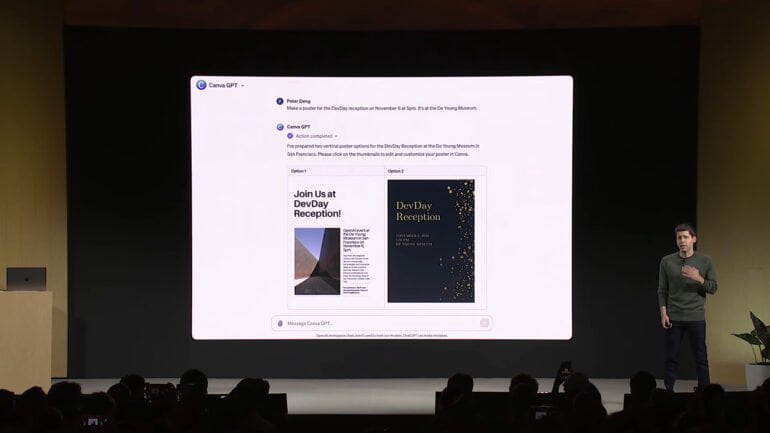 Einer der ersten Anbieter eines angepassten KI-Modells ist die Content-Software Canva, die Grafikdesign durch natürliche Spracheingabe ermöglichen soll. Canva hatte bereits ein eigenes ChatGPT-Plugin auf den Markt gebracht, das jedoch nur als erweiterbare Suchmaschine für die Template-Datenbank fungierte und keine individuellen Grafiken erstellen konnte.