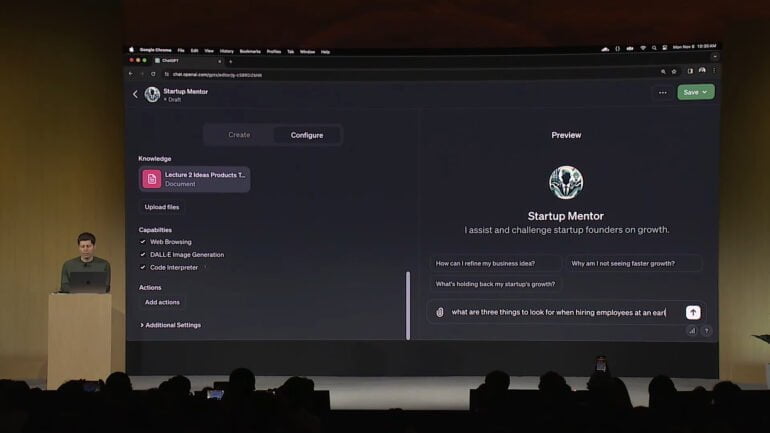 Neben dem günstigeren und mit einem deutlich längeren Kontextfenster versehenen GPT-4-Turbo spielten vor allem die GPT Custom Models eine wichtige Rolle.