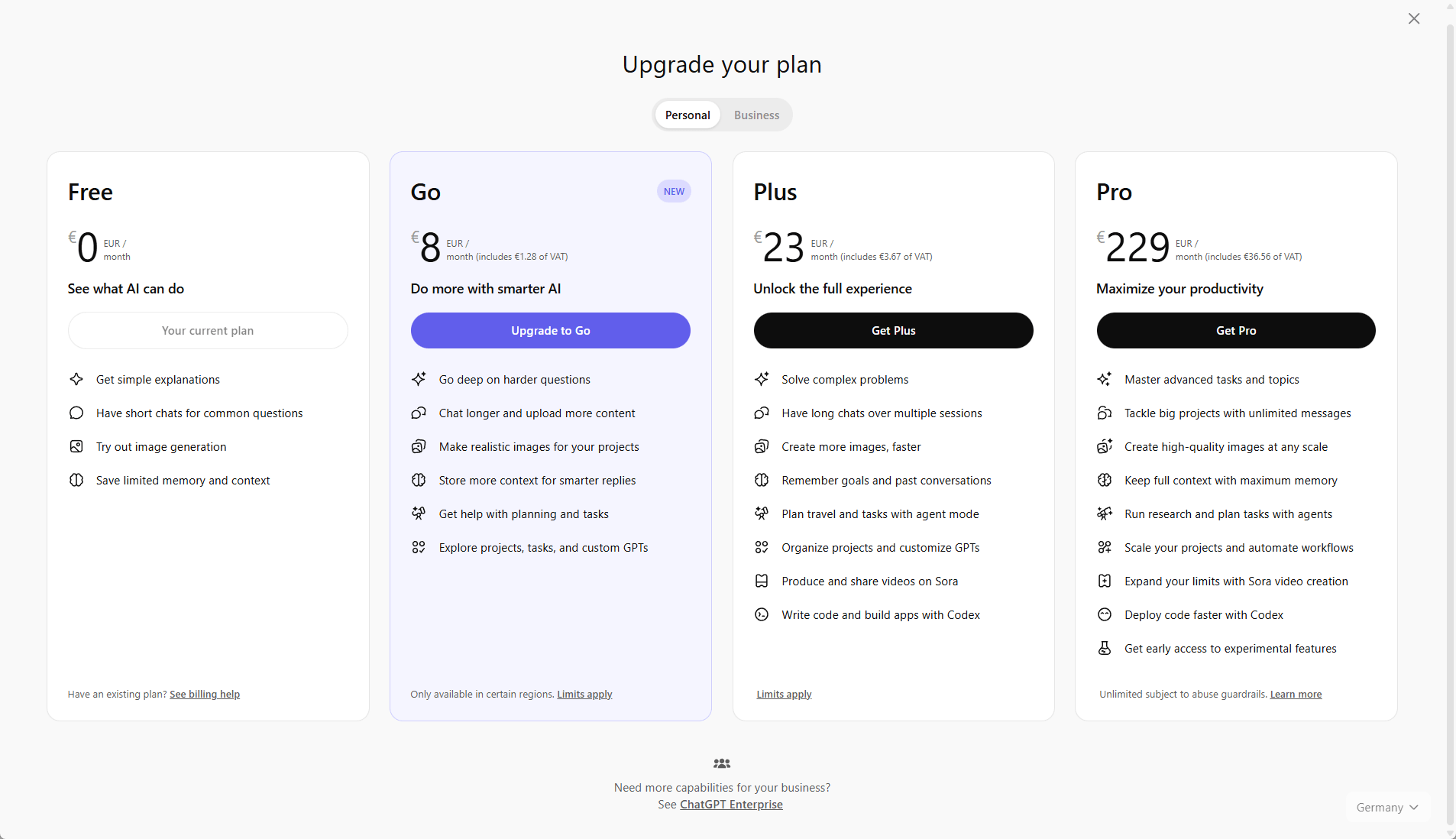 OpenAI hat die Verfügbarkeit seines günstigen Abonnements ChatGPT Go massiv ausgeweitet. Nach dem Start im August in Indien ist das Abo nun in über 70 weiteren Ländern verfügbar, darunter viele in Europa und Südamerika, wie aus einem aktualisierten Hilfe-Dokument hervorgeht. In Deutschland kostet der Zugang 8 Euro monatlich. Neben dem erweiterten Zugriff auf das Flaggschiff-Modell umfasst das Abo auch mehr Möglichkeiten zur Bildgenerierung, Datei-Analyse und Datenauswertung sowie ein größeres Kontextfenster für längere Gespräche. Nutzer können zudem Projekte organisieren und eigene GPTs erstellen. Nicht enthalten sind hingegen der Zugriff auf Sora, die API oder ältere Modelle wie GPT-4o.