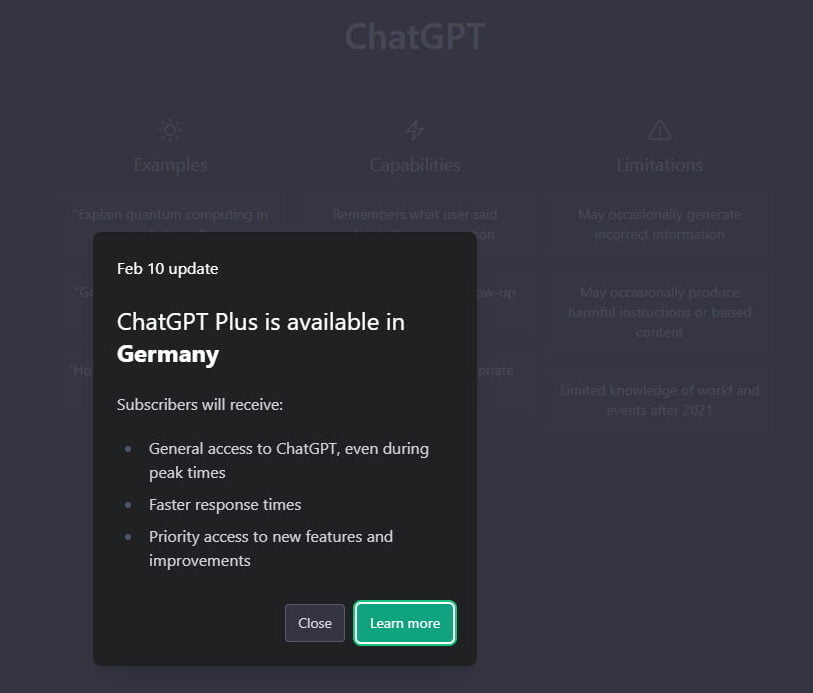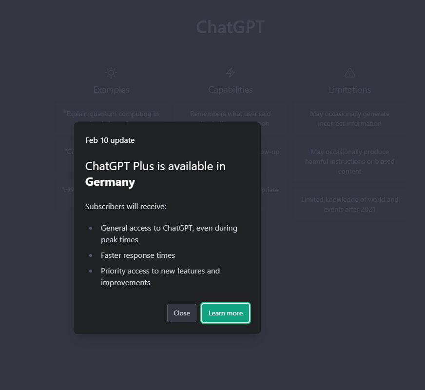 Wie in den USA, erhalten auch Subscriber in Deutschland einen zuverlässigeren Zugang, schnellere Antworten und sollen bevorzugten Zugang zu neuen Features und Verbesserungen erhalten.
