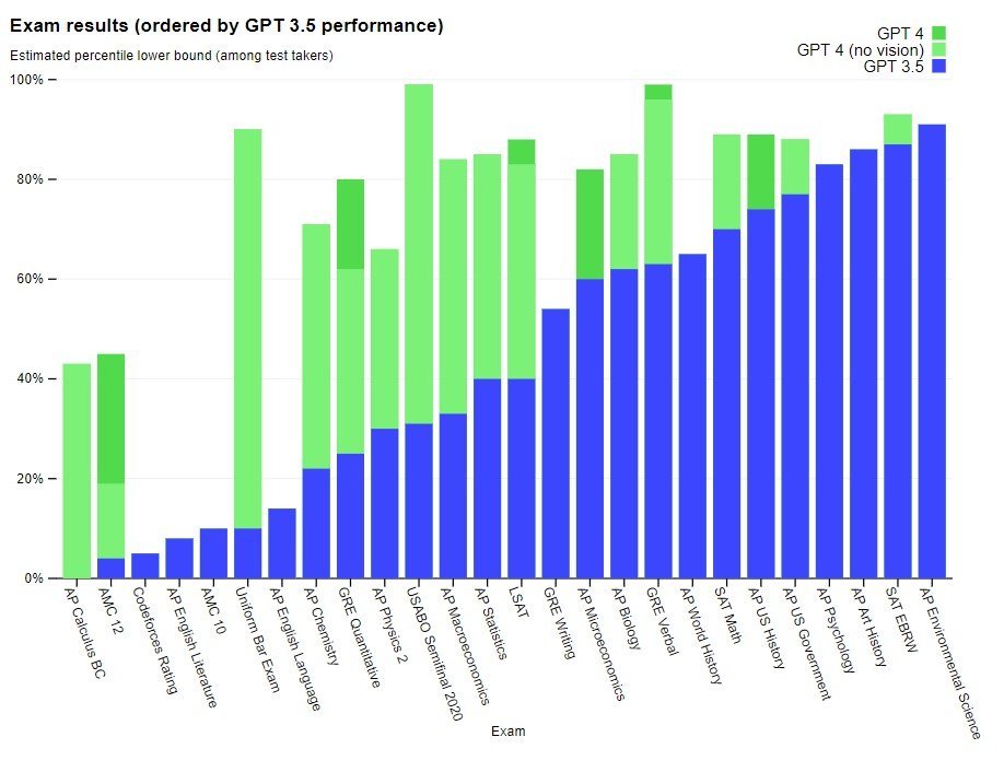 Laut OpenAI ist GPT-4 ein "Durchbruch" bei Aufgaben, die strukturiertes Problemlösen erfordern. Beispielsweise kann GPT-4 auf die Frage, wie ein Aquarium gereinigt wird, eine Schritt-für-Schritt-Anleitung ausgeben. In einer simulierten Anwaltsprüfung soll GPT-4 in den oberen zehn Prozent der Prüfungen abschließen, wo GPT-3.5 nur in den unteren zehn Prozent landete.