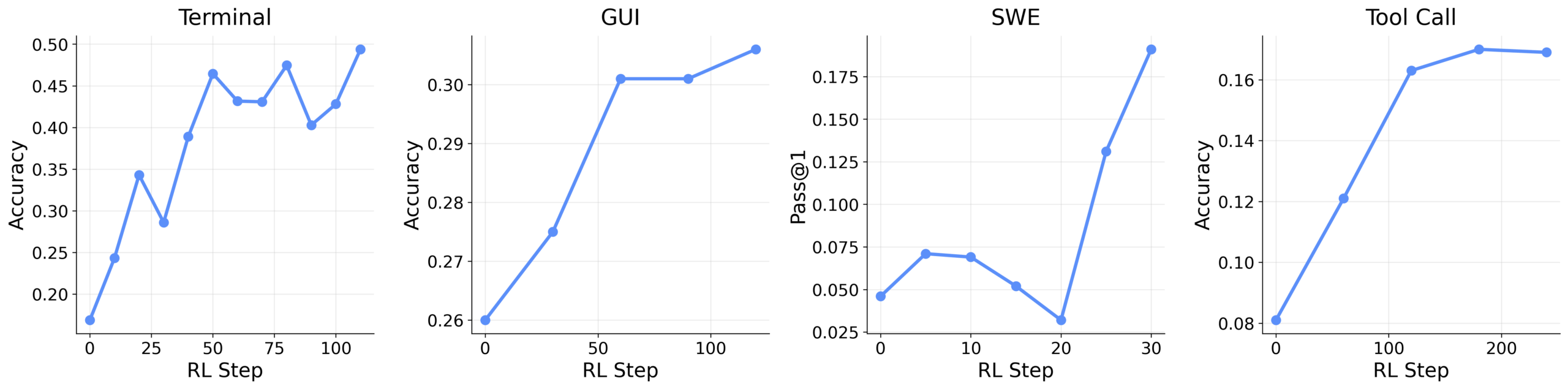Persönliche Gespräche, Kommandozeilen-Befehle, Interaktionen mit grafischen Oberflächen, Software-Engineering-Aufgaben und Werkzeugaufrufe behandeln die Forscher dabei nicht als separate Trainingsprobleme. Sie lassen sich alle im selben Durchlauf nutzen, um dasselbe Modell zu verbessern.