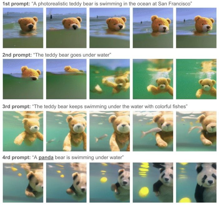Als Beispiel für ein längeres Video zeigt das Team den folgenden Clip. Er wurde anhand eines ausführlichen Textbefehls generiert, der Szene für Szene beschreibt.