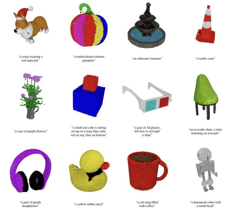 OpenAIs Point-E ist DALL-E für 3D Objekte. Das extrem schnelle Modell generiert aus Text eine 3D-Punktewolke und anschließend ein Mesh.
