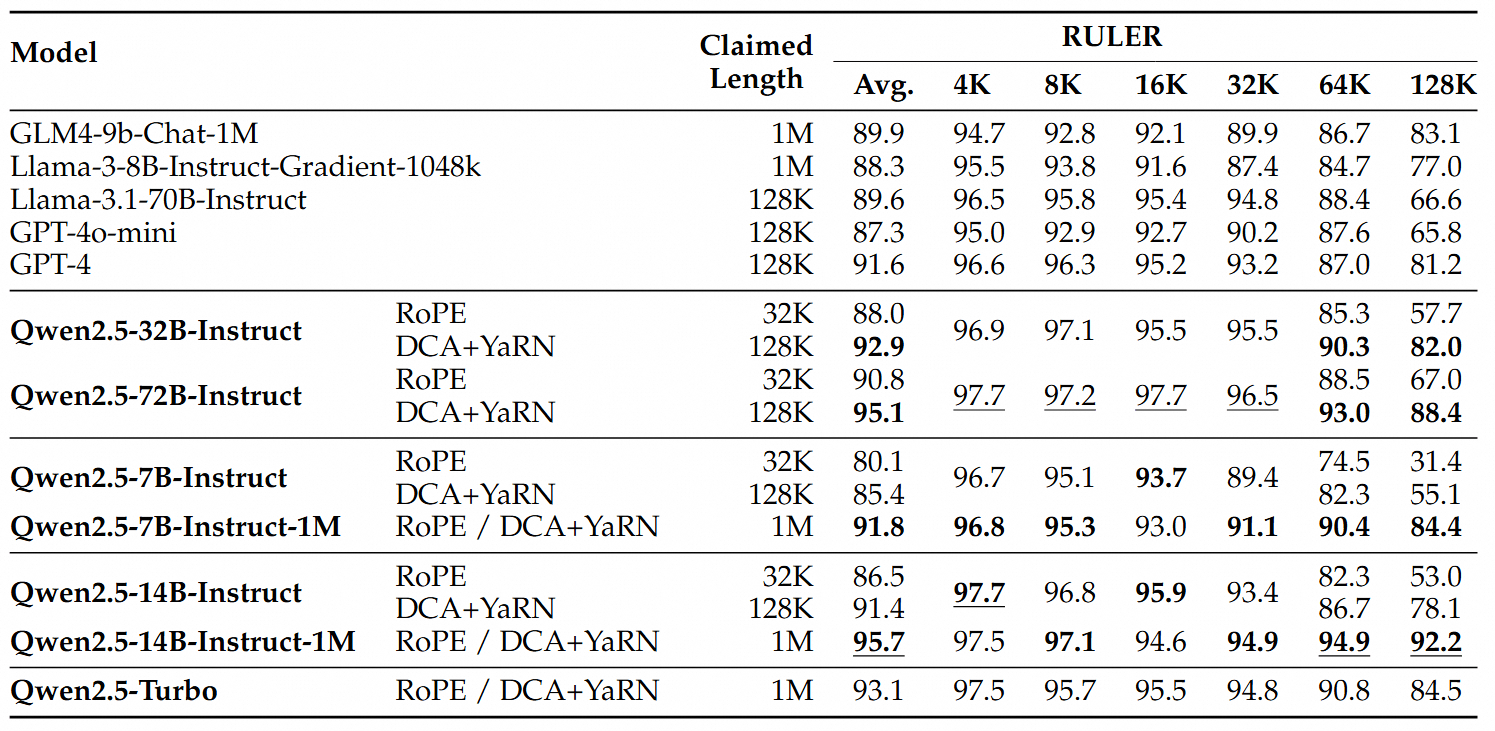 Das Qwen2.5-14B-Instruct-1M-Modell erreichte als erstes Modell der Qwen-Serie die 90-Punkte-Marke im RULER-Benchmark und übertraf durchweg GPT-4o mini in mehreren Datensätzen. Damit bietet es eine leistungsstarke Open-Source-Option für Aufgaben mit langem Kontext.