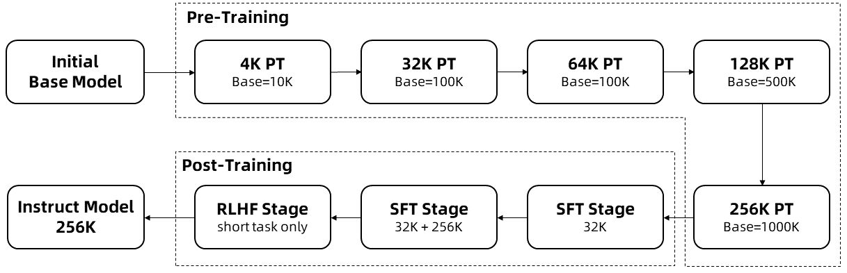 Alibaba beschreibt mehrere Schlüsseltechniken für das Training der 1M-Modelle, darunter die Verwendung synthetischer Daten, eine schrittweise Erweiterung der Kontextlänge und mehrstufiges überwachtes Feintuning.