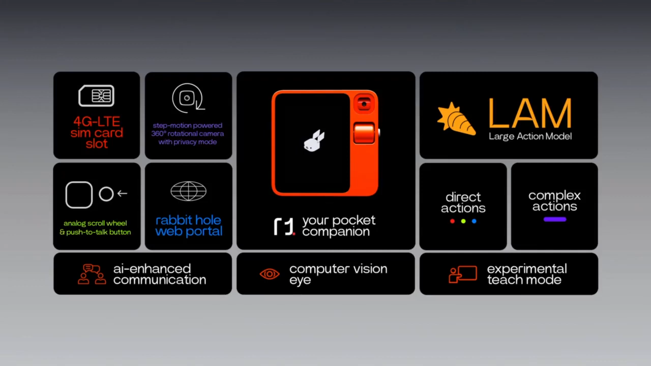 Das in Zusammenarbeit mit Teenage Engineering entwickelte Rabbit R1 ist etwa halb so groß wie ein iPhone und verfügt über einen 2,3-GHz-MediaTek-Prozessor, 4 GB Arbeitsspeicher und 128 GB Speicherplatz.