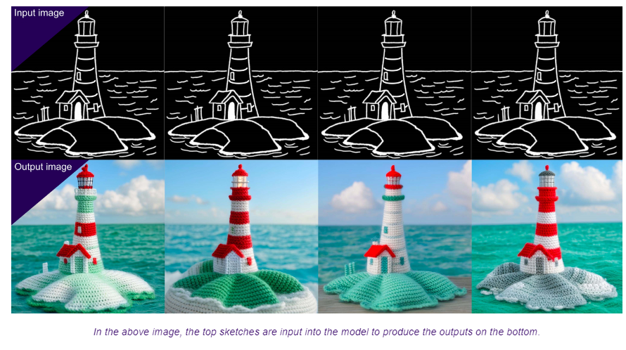 Benutzer können damit Variationen eines bestimmten Bildes erzeugen, neue Bilder auf der Grundlage vorhandener Bilder erstellen, maskierte Teile eines Bildes füllen, Bilder erzeugen, die den Kanten eines Eingabebildes folgen, und Bilder auf höhere Auflösungen skalieren.