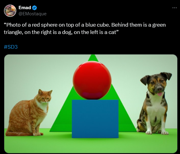 Konkret verspricht Stability AI eine verbesserte Leistung bei mehrteiligen, komplexen Prompts, bei der Bildqualität und bei der Fähigkeit, Texte zu schreiben. Stability-AI-CEO Emad Mostaque zeigt bei X ein Beispiel, wie exakt Stable Diffusion 3 einen komplexen Prompt umsetzt. Ob das immer so zuverlässig funktioniert und wie viele Versuche pro Bild nötig sind, um ein solches Ergebnis zu erzielen, muss die Praxis zeigen.