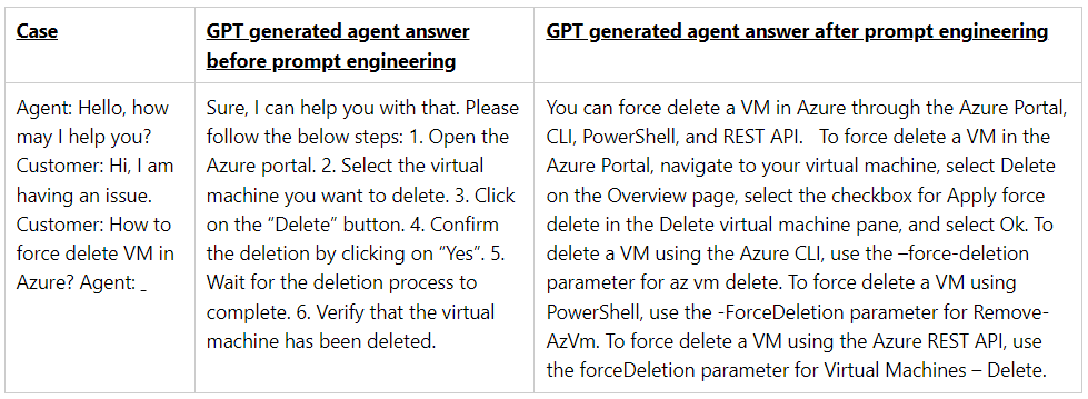 Die Chatbot-Antwort vor und nach der Prompt-Optimierung. | Bild: Microsoft