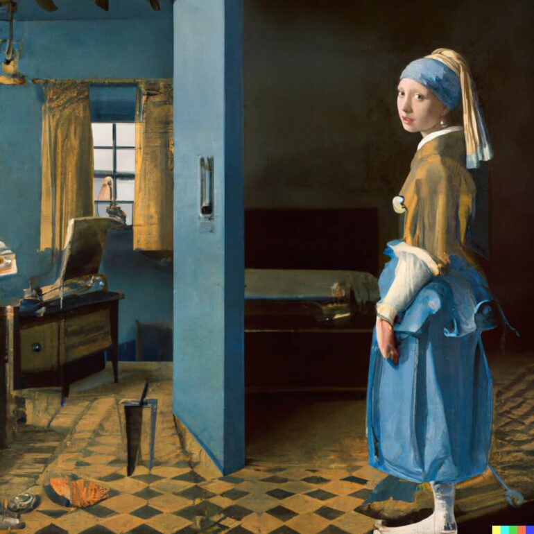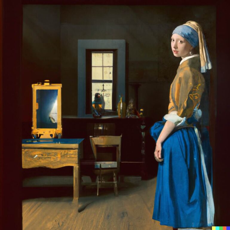 Der KI-Künstler Denis Shiryaev hat sich gemeinsam mit Kollegen diese Fähigkeit von DALL-E 2 jetzt zunutze gemacht, um berühmte Porträts und Gemälde von Künstlern wie Leonardo da Vinci, Vasily Vereshchagin und Johannes Vermeer durch die KI erweitern zu lassen. So sitzt die Mona Lisa jetzt im Wald, kniet auf einer Lichtung oder steht in einem Teich.
